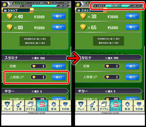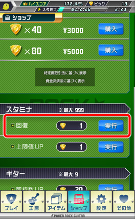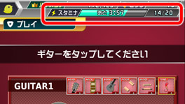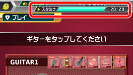 スタミナは使用すると減り、足りなくなると演奏モードで遊べなくなってしまいます。
