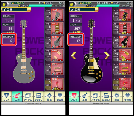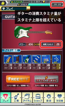 使えるスタミナには上限があるので、ギターのアイテムを選ぶ際は、性能と消費スタミナのバランスを考慮する必要があります。