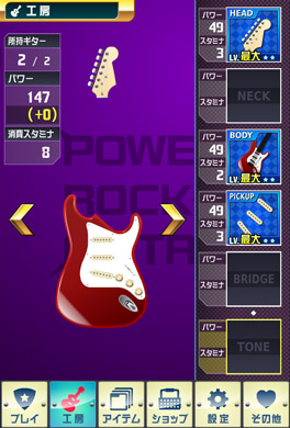 本アプリの攻略が進むと、新しいアイテムが手に入り、ギターをカスタマイズする楽しみが出てきます。