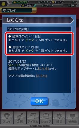 ピックは、日々の“ログインボーナス”で入手することができます。