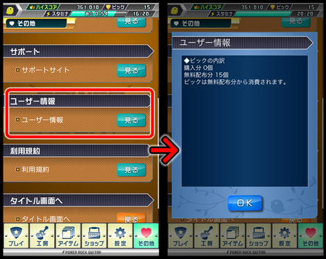 所持ピックの内訳は、“その他”画面の「ユーザー情報」で確認することができます。