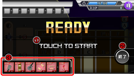 “演奏” 画面は、画面をタップしてギター演奏をする、本アプリのメインクエストといえる画面です。